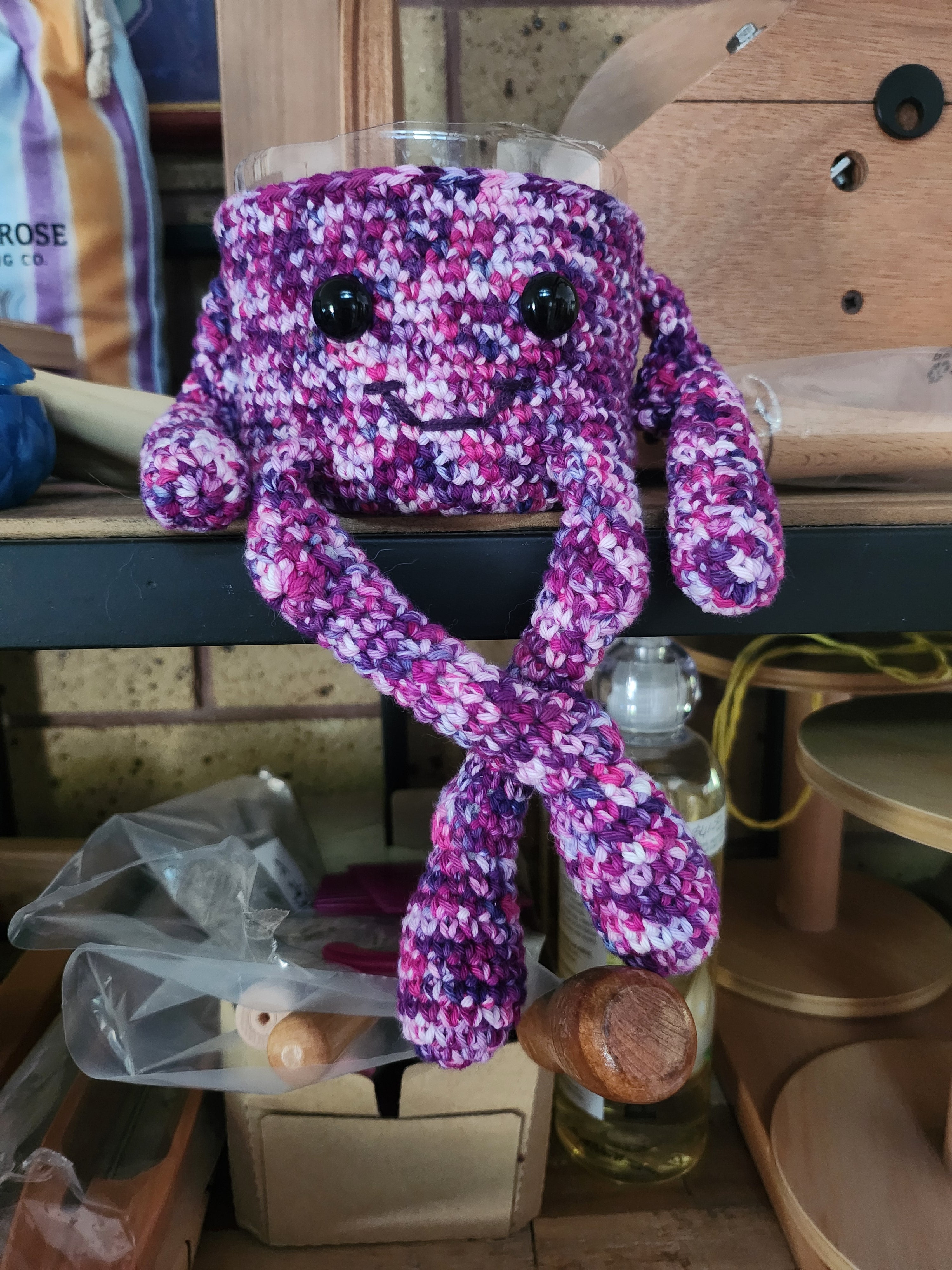 This little dude is so fun. Crocheted from hand dyed (by me), cotton, this little cosy basket holds trinkets, whatever. Crafty Intentions, or Megan Lapp, has done a fabulous job creating baskets with attitude!