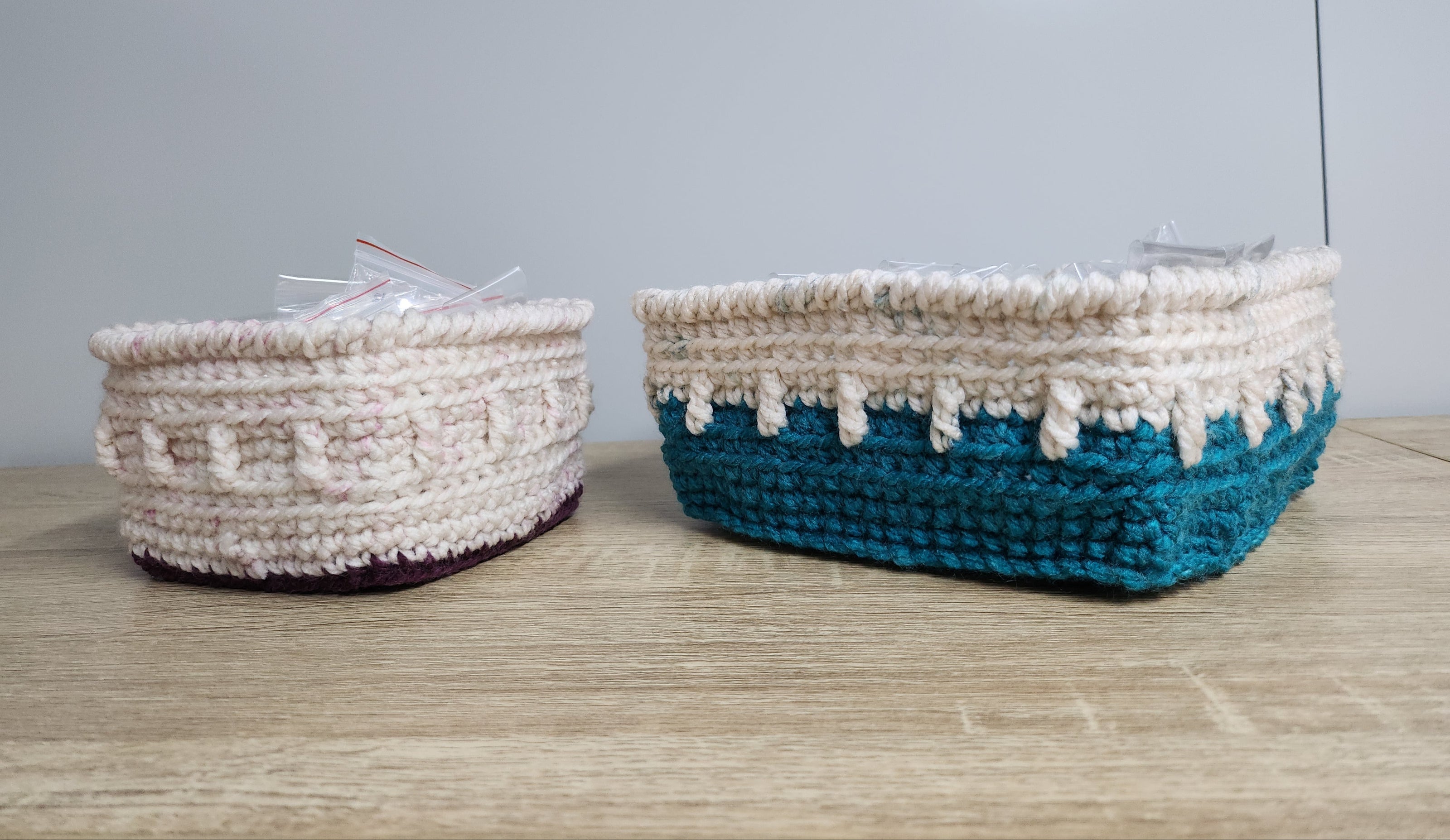 I admire baskets. Key holders, storage containers, yarn ball holders - they are highly functional and customizable. This pattern was formed organically as I worked.