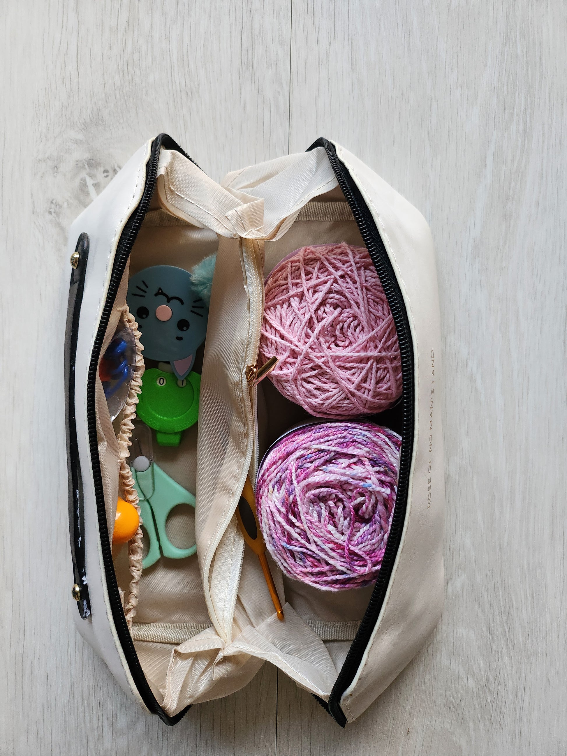 The Diagonal Zipper PU Leather Travel Bag offers effortless access to your crochet essentials with its innovative zipper that opens flat. Crafted from durable hard outer fabric, it safeguards your yarn, hooks, scissors, and tins from damage. Designed to hold two 100g balls of yarn plus all your tools, this bag is the ideal companion for crafting on the go—whether you’re traveling by car, plane, or meeting friends. Keep your supplies organized and protected wherever creativity takes you.