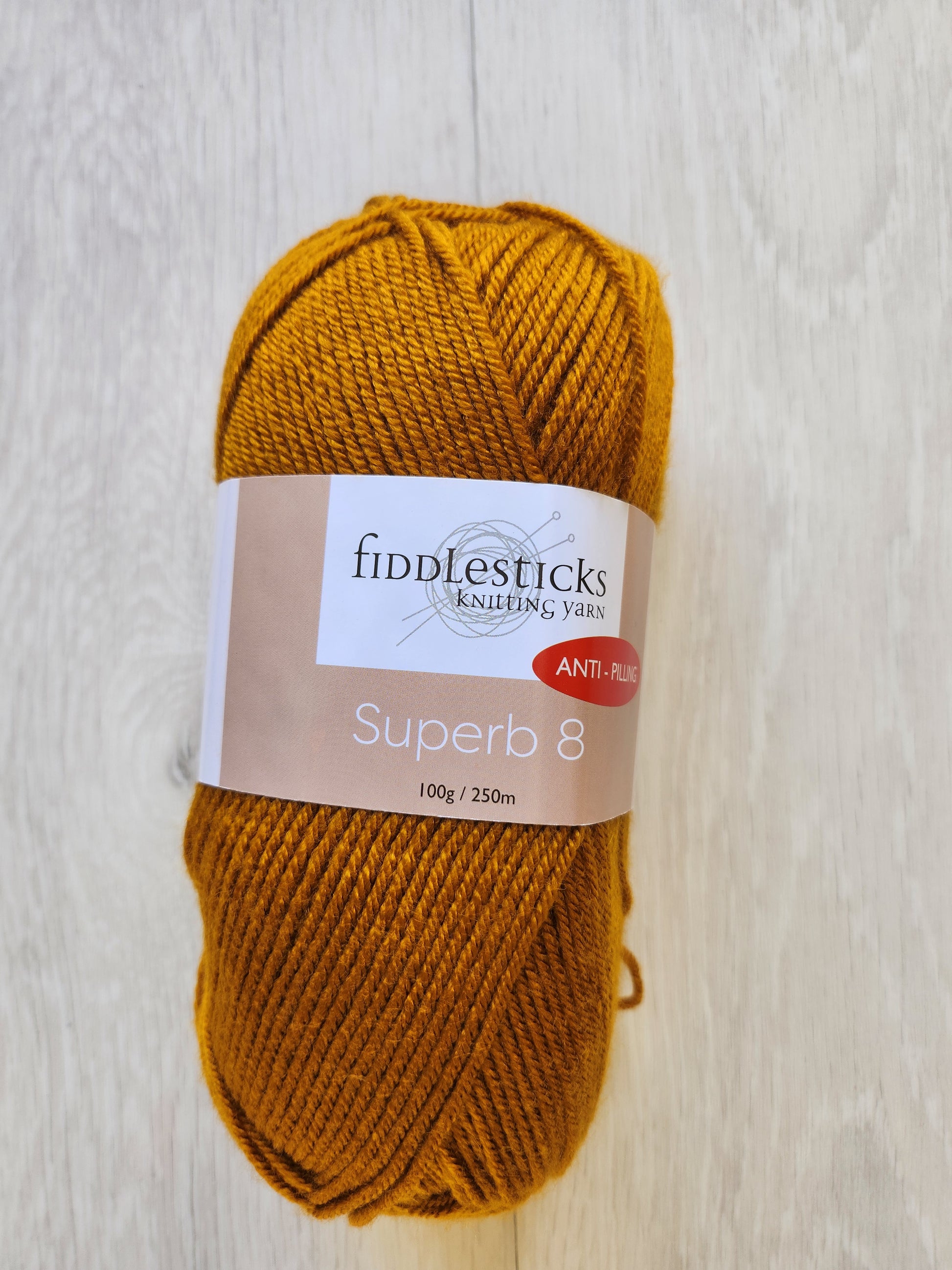 Fiddlesticks presents Superb 8, an 8-ply yarn crafted from 100% Anti-Pilling Acrylic. This yarn is ideal for all types of projects. Suitable for both novice and experienced crafters, it is perfect for making blankets, garments, and granny squares with elegance and durability.